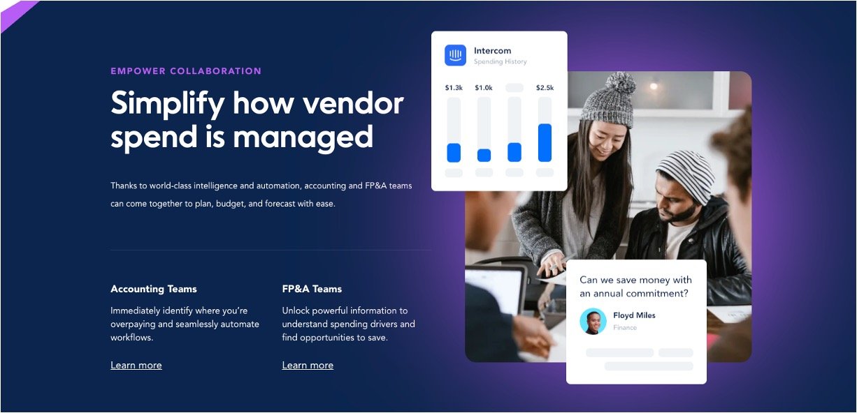 Smart Alerts & Insights: Catches billing errors, duplicates, and overspending trends; shows department-level spend and peer pricing for easy savings.