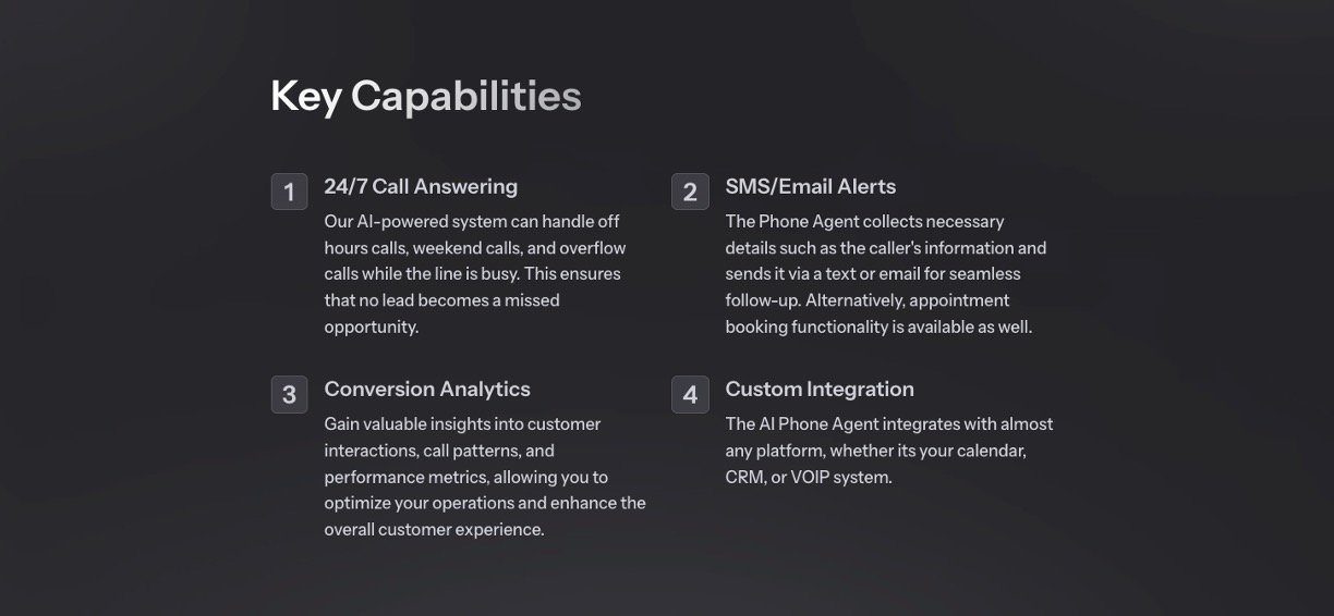 • AI-Powered Conversations: Uses advanced AI to understand caller needs and deliver natural dialogue.