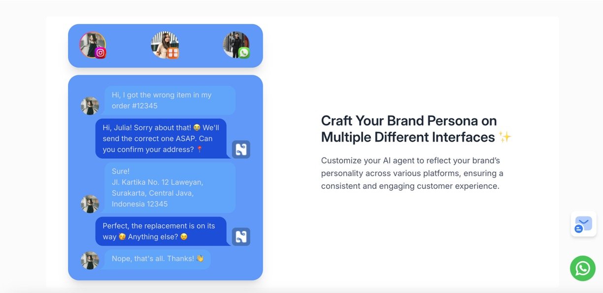 Multi-channel integration across platforms like WhatsApp, web chat, and Instagram, tailoring brand personality and user experience consistently.