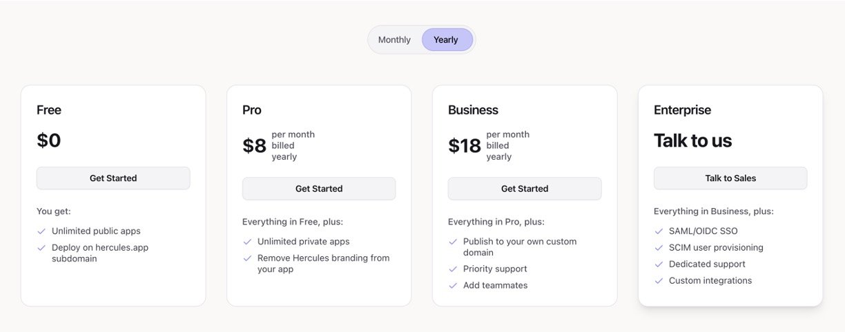 • One-click deployment using Hercules-provided domains or custom domains.