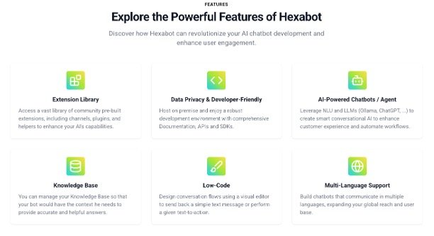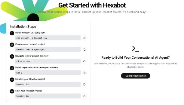 Hexabot is an open-source AI chatbot builder that empowers businesses and developers to create multilingual, multi-channel chatbots with ease. Designed for flexibility and customization, Hexabot offers a visual drag-and-drop interface, robust natural language understanding (NLU), and seamless integration with large language models (LLMs) like ChatGPT and Gemini. Whether you're aiming to automate customer support, enhance e-commerce experiences, or develop educational assistants, Hexabot provides the tools to build intelligent, responsive chatbots tailored to your needs.