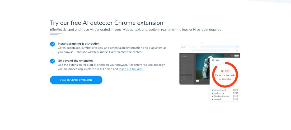 Hive Moderation offers a simple way to check if content like text, pictures, videos, or sounds was made by AI or a person. Just upload or paste your file, and it gives you a clear confidence score showing the likelihood of AI involvement—often pinpointing the exact AI tool used. Perfect for anyone worried about fake news, deepfakes, or copied work, this tool fits right into your daily browsing or big projects with its browser extension and API options.