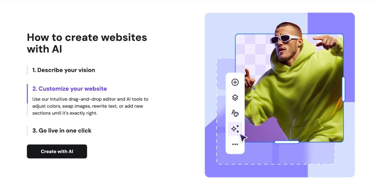 • Create stunning, AI-crafted websites easily no code, just creativity.