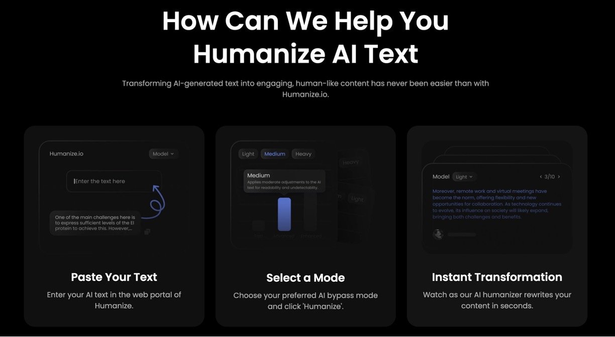 Three easy modes (Light, Medium, Heavy) let you pick how much to humanize your text.