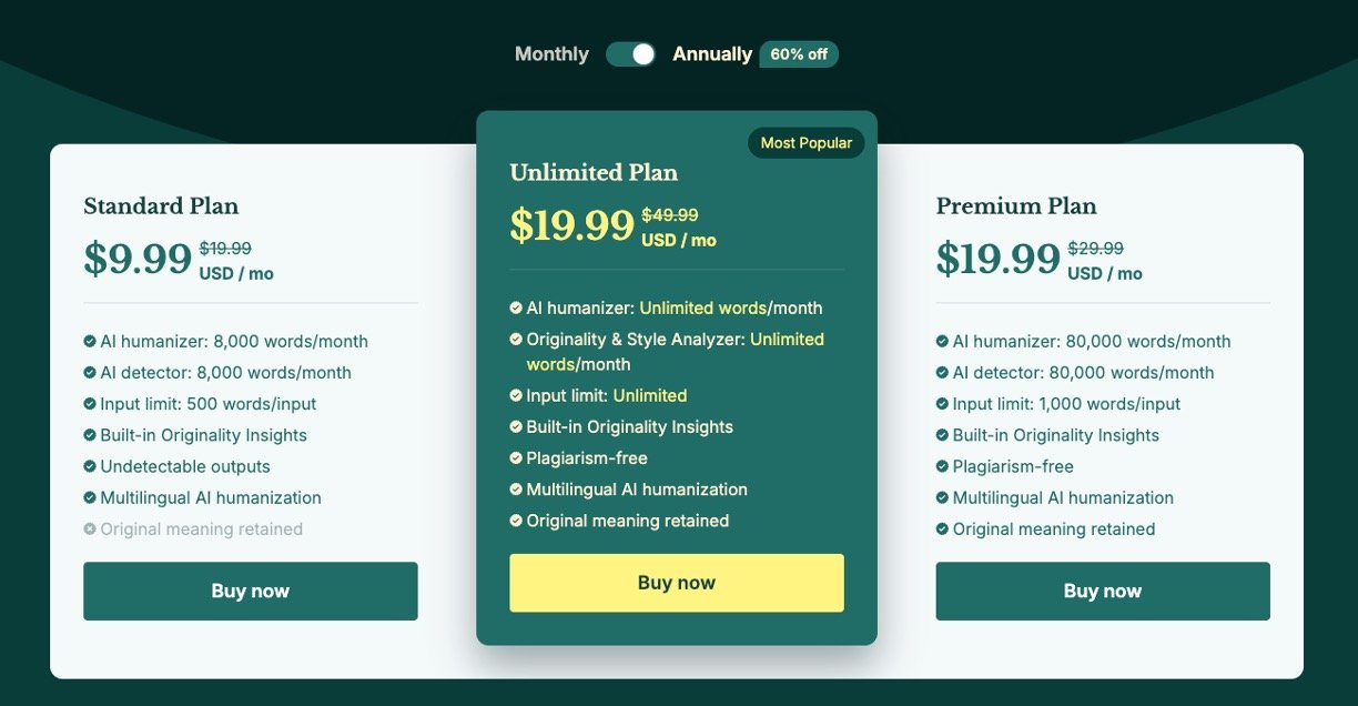 Converts AI texts from tools like ChatGPT, Gemini, Jasper, and Grammarly to fully humanized, authentic language.
