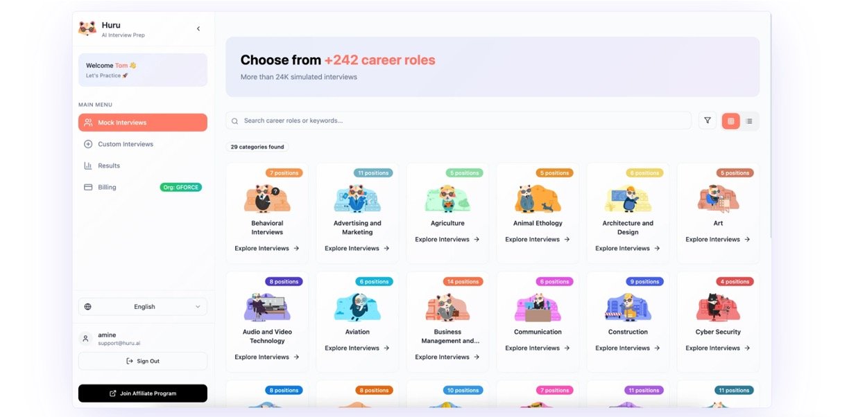 Huru AI turns job interview anxiety into confidence by letting you record unlimited mock interviews anytime. The AI acts like a smart coach, analyzing your answers for content, speech, body language, and more, then gives clear tips and example responses to improve fast. It's perfect for beginners, supporting multiple languages and pulling questions straight from sites like LinkedIn or Indeed.