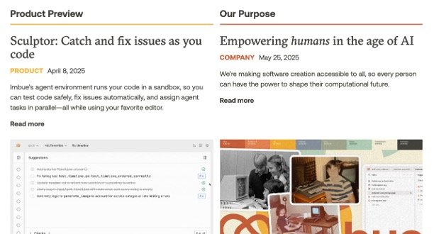 Imbue is an AI research company dedicated to developing advanced AI agents capable of reasoning and coding. Imbue's mission is to create powerful computing tools controlled by individuals, emphasizing human-centric values in AI development. By training foundation models optimized for reasoning, Imbue aims to build AI systems that assist users in accomplishing complex tasks safely and effectively.