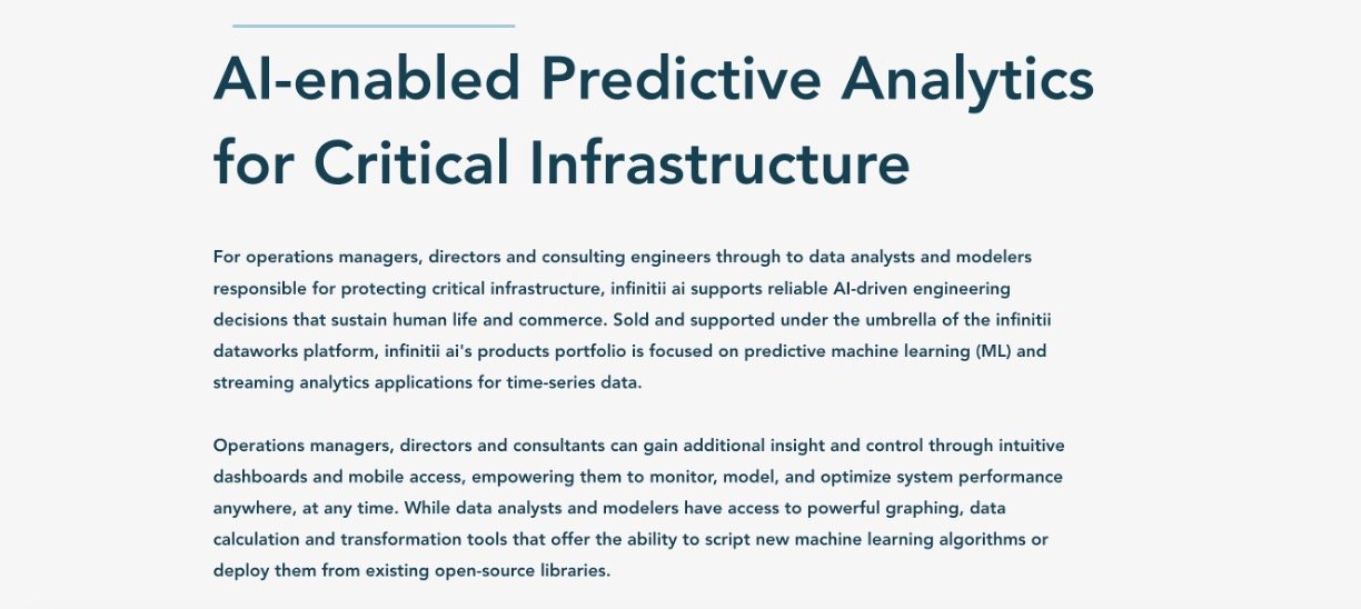 Infinitii AI is a powerful AI-driven predictive analytics platform designed to empower utilities, smart cities, and industrial infrastructure operators with real-time actionable insights. It integrates data from diverse sources such as sensors, SCADA, satellite, NOAA, and more to monitor, analyze, and predict system performance, helping prevent failures and optimize operations. The platform transforms raw data into meaningful visualizations, alarms, and reports to support faster, smarter decision-making. Infinitii AI serves major water utilities and industrial customers by offering scalable tools for anomaly detection, predictive maintenance, and quality control, enabling infrastructure resilience and operational efficiency.