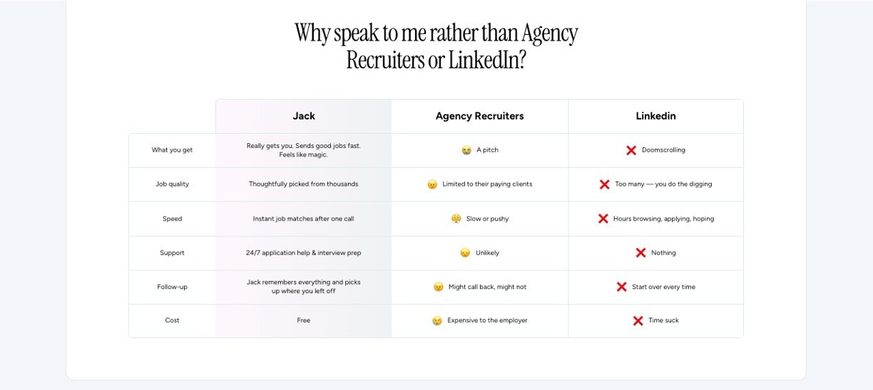 Jack & Jill is an innovative AI-driven recruitment platform that makes job searching and hiring more personal, efficient, and effective. Jack acts as a career coach for job seekers, deeply understanding their goals, skills, and preferences through natural voice conversations. Meanwhile, Jill works with hiring managers to grasp company culture and role specifics. Together, they scan thousands of jobs and candidates, matching people with opportunities that truly fit, cutting through noise and irrelevant listings with human-like insight and care.