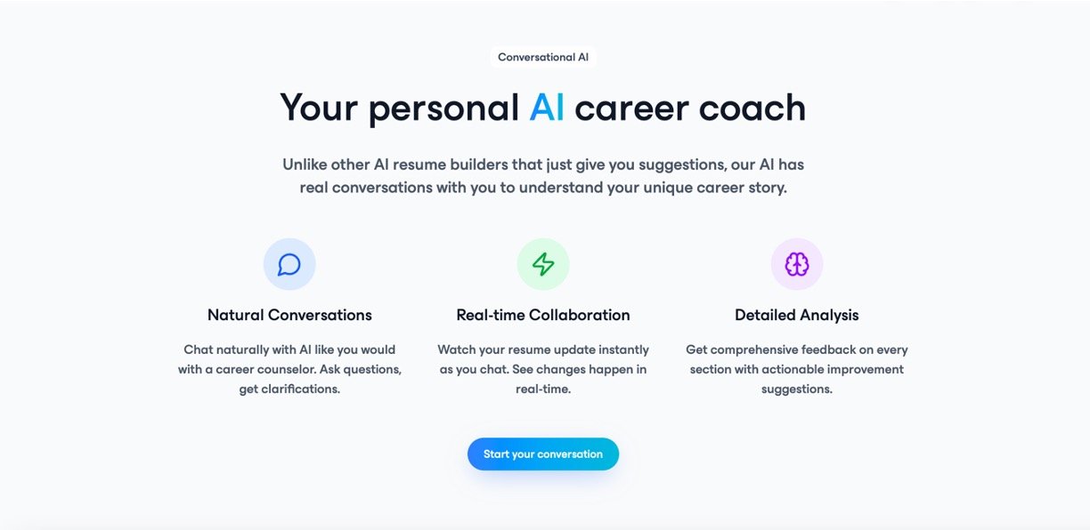 Jobsuit AI is an interactive AI-powered resume builder designed to help job seekers craft professional, ATS-friendly resumes tailored to any job description with real-time AI feedback and keyword suggestions. It guides users through a conversational process, acting like a personal career coach to optimize resumes, highlight key achievements, and generate impactful bullet points and cover letters that increase hiring chances.