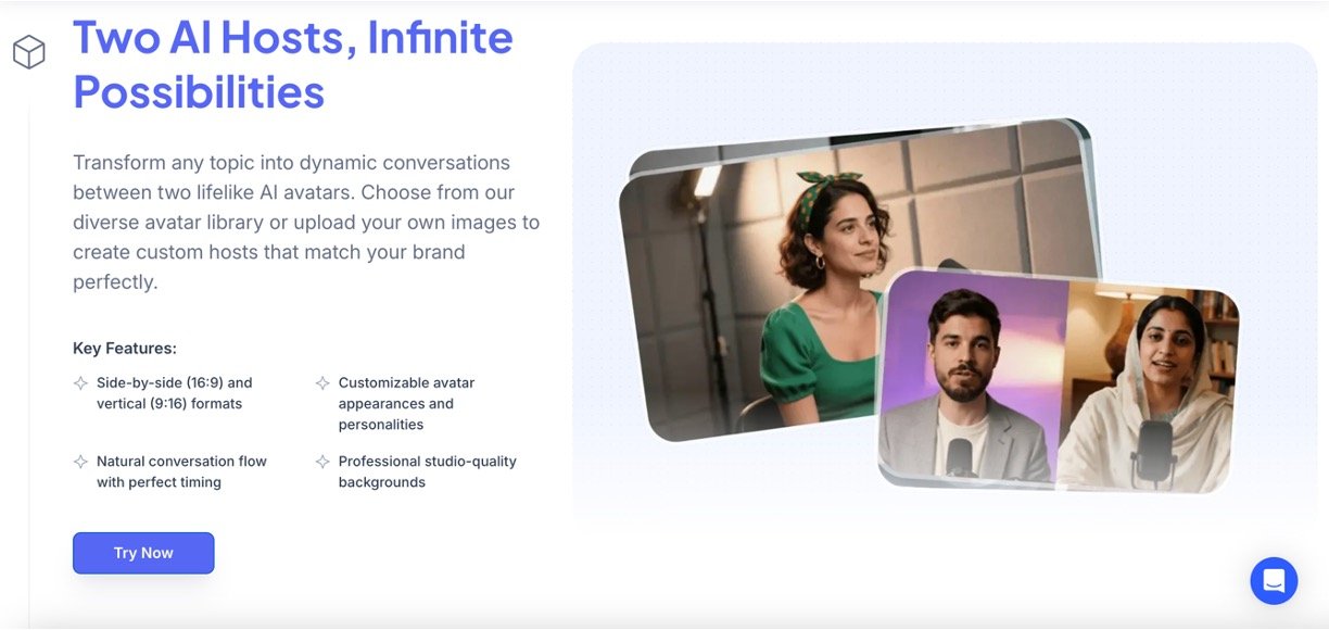 • Businesses scaling brand storytelling with visually rich AI podcast videos.