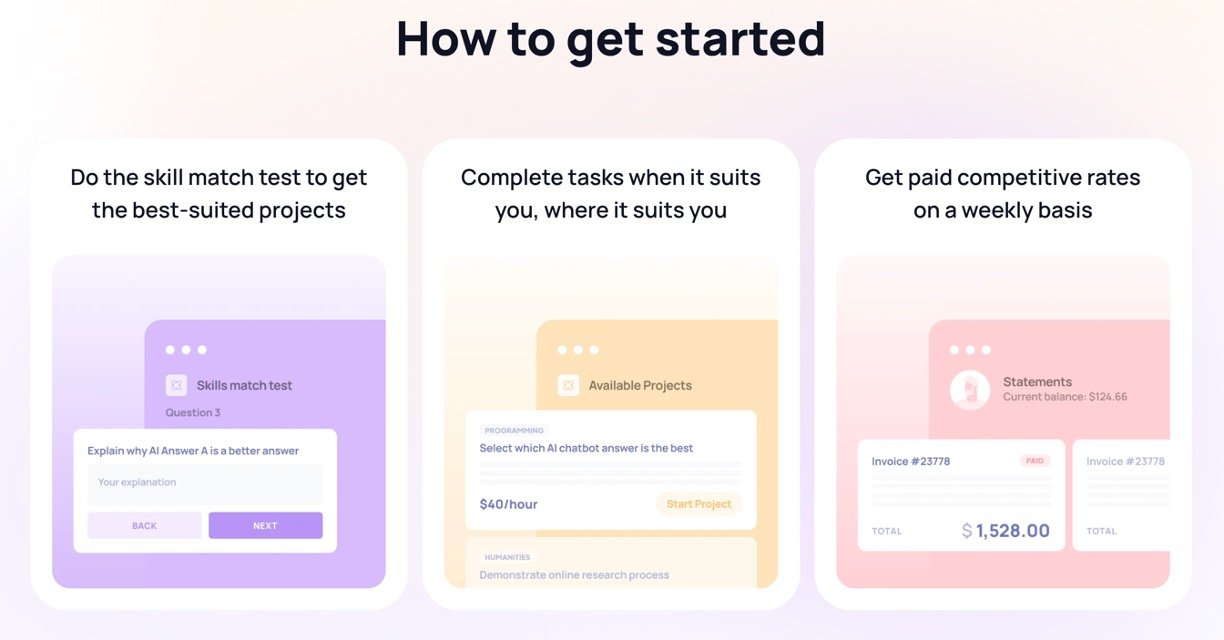 Earning supplemental income alongside studies, a main job, or family responsibilities through flexible, project-based AI work.