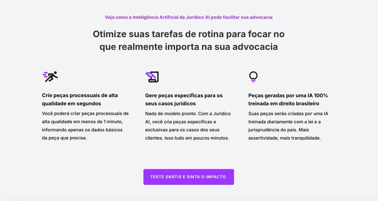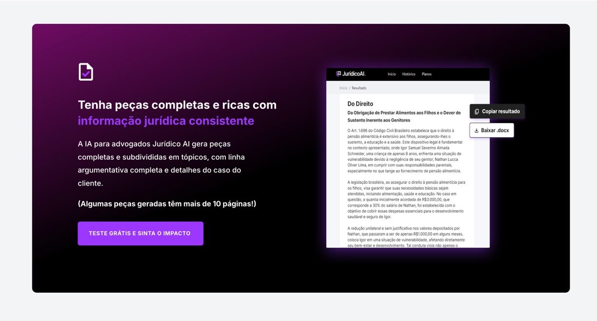 • AI trained and constantly updated with Brazilian legislation, jurisprudence, and legal vocabulary for precise document generation.