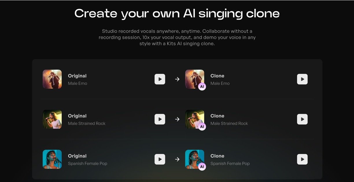 AI Voice Cloning: Create custom AI singing clones to mimic vocal styles and timbres, enhancing vocal production without studio sessions.