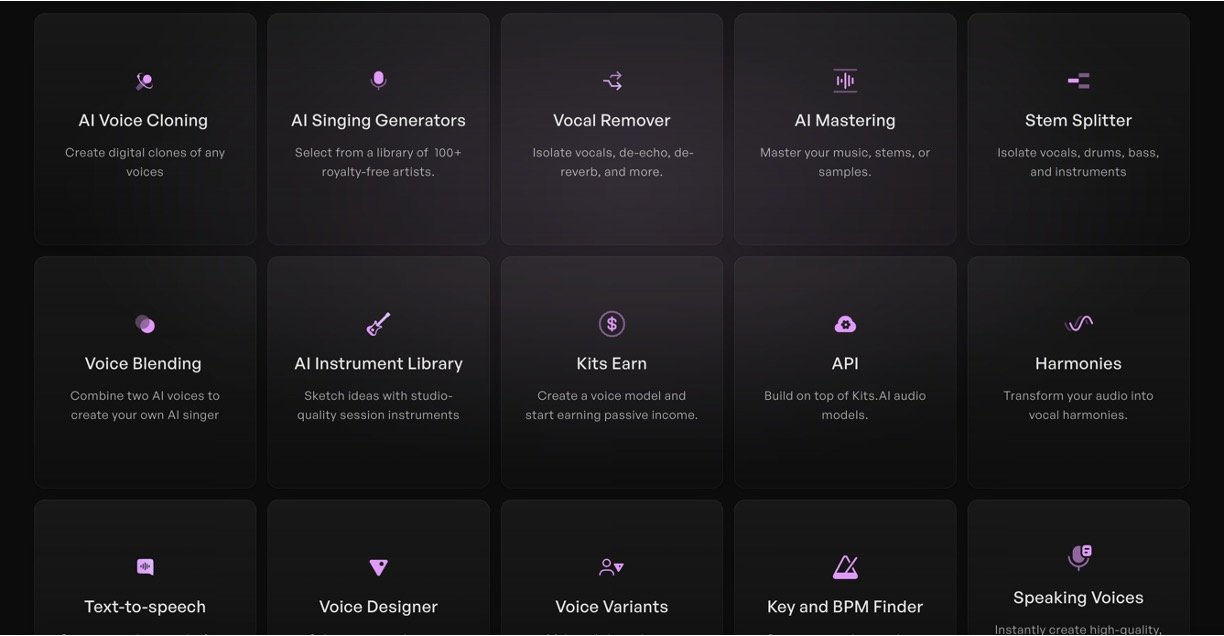 Kits AI is an innovative platform offering studio-quality AI music tools designed to streamline and enhance the music production workflow. It specializes in AI voice cloning, singing voice generation, vocal isolation, and AI audio mastering, empowering musicians, producers, and creators to produce professional-level music efficiently. Kits AI’s technology enables users to clone voices, sing in any style, play virtual instruments, and isolate vocals—all with royalty-free output suitable for commercial use.