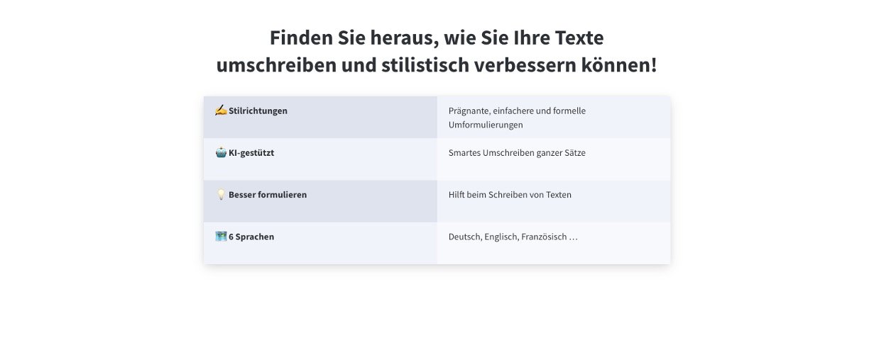 The LanguageTool Text Rewriter is an AI-powered tool that helps you rephrase sentences to sound clearer, more natural, and more polished. It’s designed to enhance your writing style without changing your original meaning. Whether you need a more formal tone for work, a friendlier message for emails, or just want to avoid repetition, the Text Rewriter provides smart alternatives with a single click. It’s part of the trusted LanguageTool platform, making high-quality writing accessible to everyone.