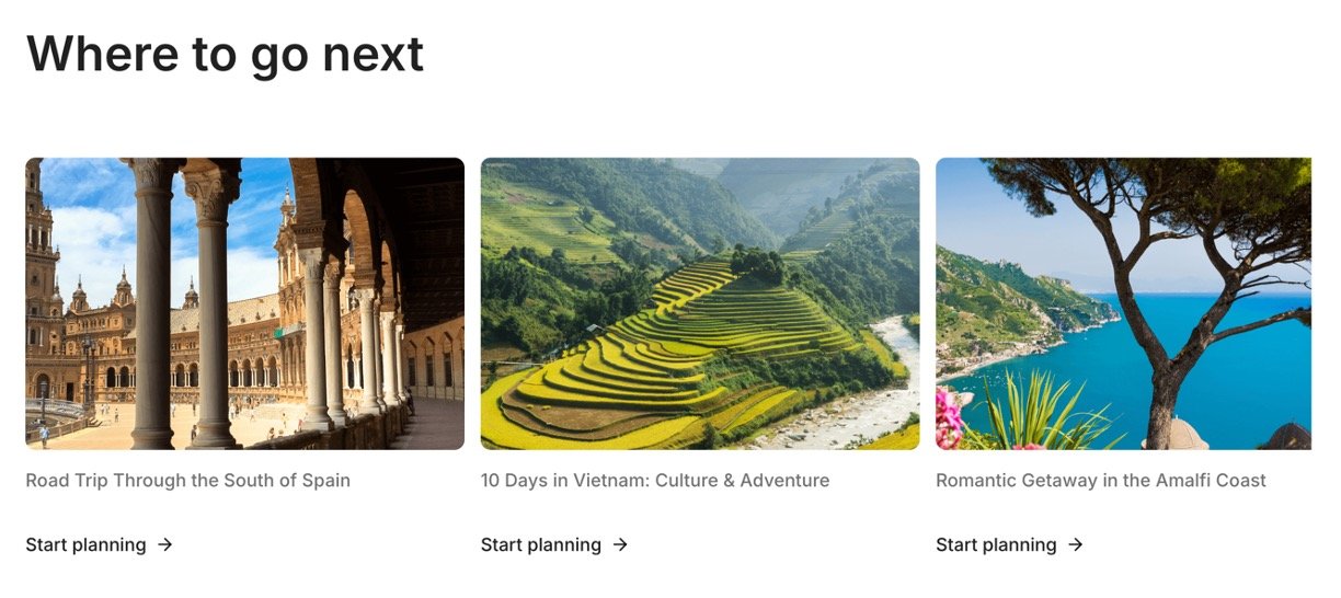 AI-driven personalized travel itineraries tailored to your style, dates, and budget.