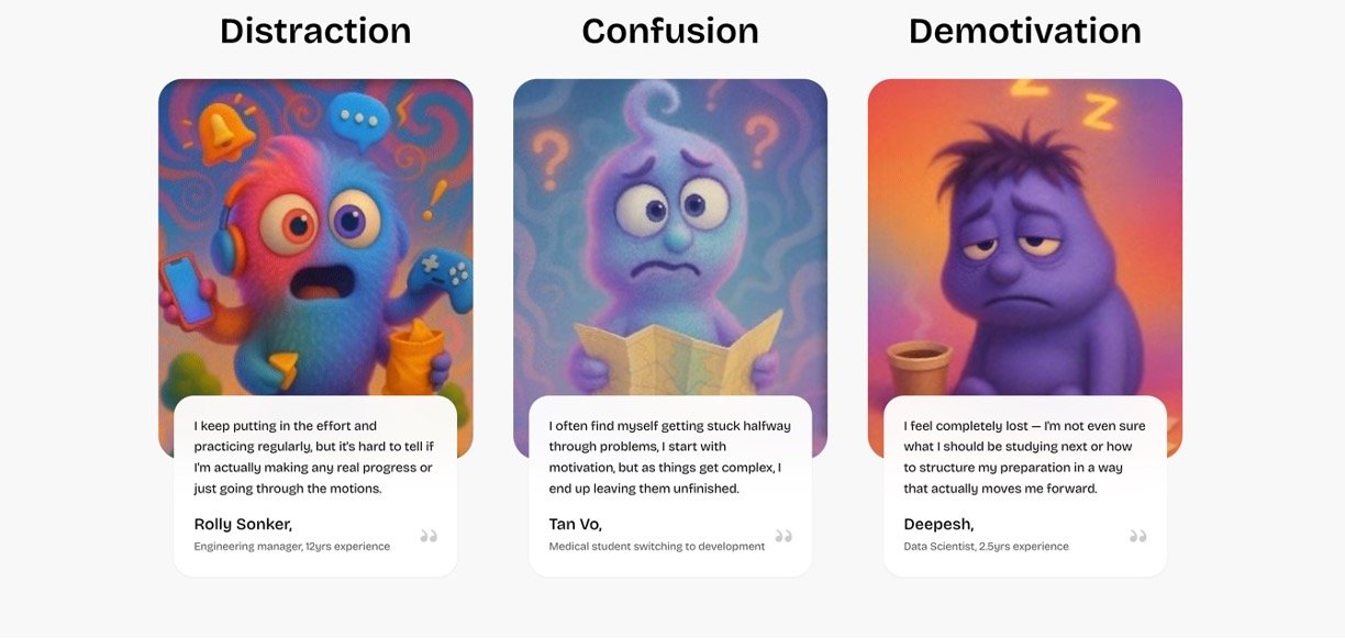 Personalized Learning Paths: Offers structured interview preparation routes based on real company patterns and user goals.