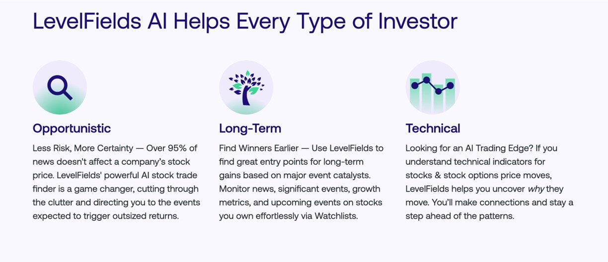 LevelFields is an AI-driven fintech platform that automates complex investment research by scanning millions of market signals for over 6,000 stocks. It focuses on event-driven investing by identifying specific market-moving events—like leadership changes, lawsuits, or regulatory updates—and analyzing historical impact patterns to predict how stocks might react. This gives investors data-backed alerts for high-probability trade opportunities, eliminating guesswork and emotional bias while saving significant research time.