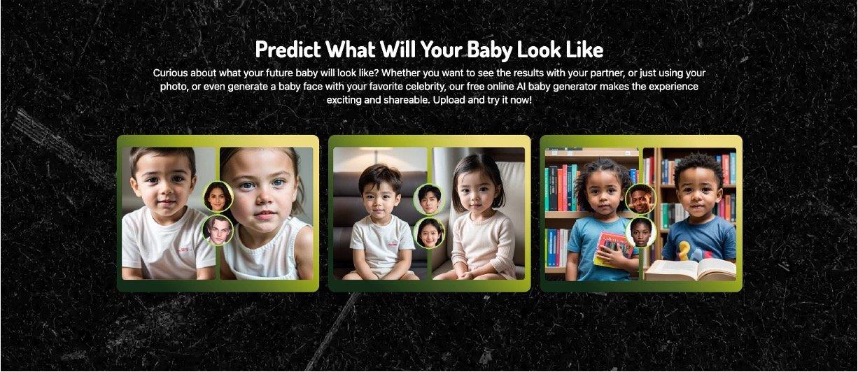 Personalized baby prediction from parent photos, blending traits accurately for boy or girl options.