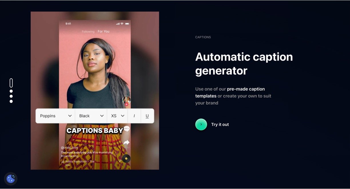 • Auto-Captions: Generates captions instantly with customizable styles, fonts, and templates to match your brand.