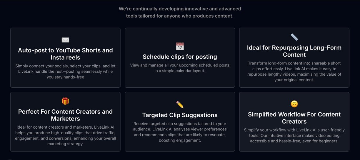 LiveLink AI is the fastest way to make short, engaging clips from long videos like podcasts, webinars, or talks. It uses smart AI to spot key moments, track speakers with facial recognition, and format everything for TikTok, Instagram Reels, or YouTube Shorts. Add your brand style once, and it applies automatically every time – so you focus on creating, not editing. Beginners love its simple interface that handles the hard work.
