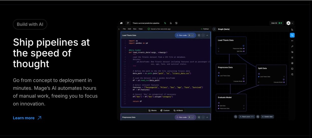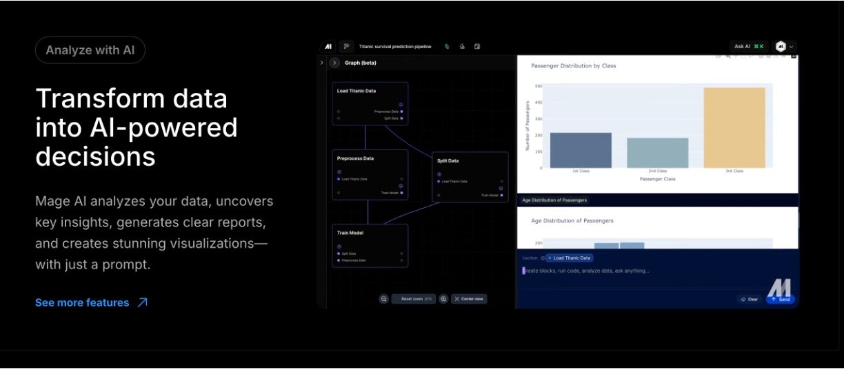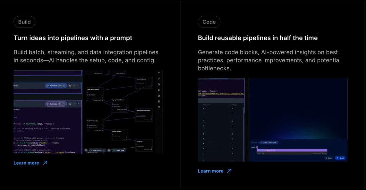 Mage AI turns complex data tasks into simple, magical workflows that anyone can handle, even without deep tech skills. It lets you build, sync, and transform data using everyday tools like Python, SQL, or dbt, all in one friendly interface. With AI smartening up every step—from integration to monitoring—you focus on results, not headaches. Mage AI is your go-to platform for creating reliable data pipelines without getting stuck in technical details. It combines notebooks' ease with pro-level code for syncing data from anywhere, running analytics, and building AI models. Teams love how it scales effortlessly, monitors everything in real-time, and cuts costs while keeping data clean and trustworthy.