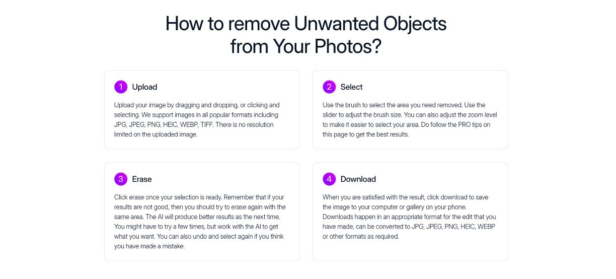 Simple, no‑signup web interface with zoom and adjustable brush size for precise editing.