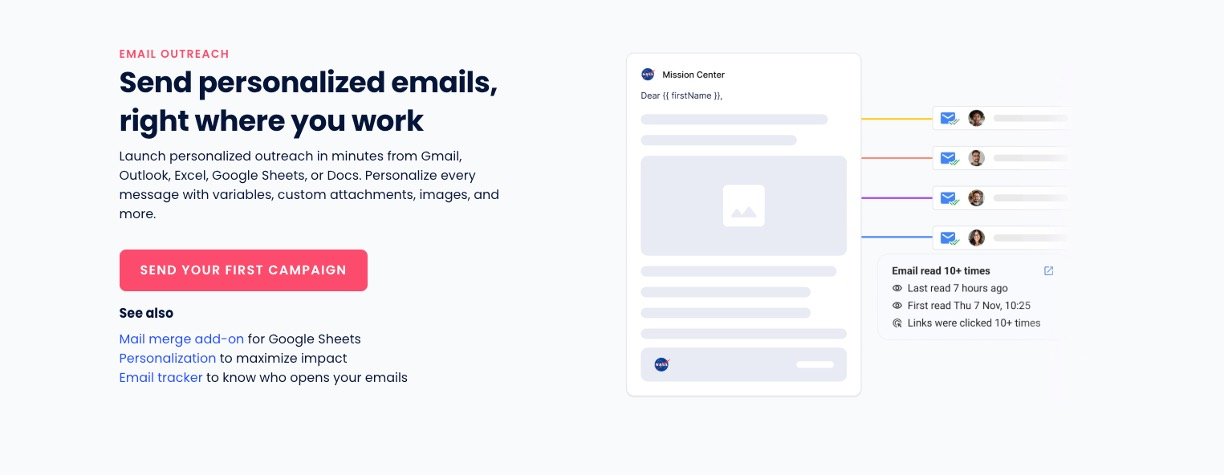 Mailmeteor is a simple email marketing tool that lets you send personalized bulk emails and handle replies right from Gmail, Outlook, or Google Sheets. No tech skills needed—it works like typing one email at a time but scales to hundreds, with AI helping draft replies in your own style and track who opens them. Over 7 million users love it for keeping emails out of spam and making outreach feel personal, perfect for beginners in sales or marketing.