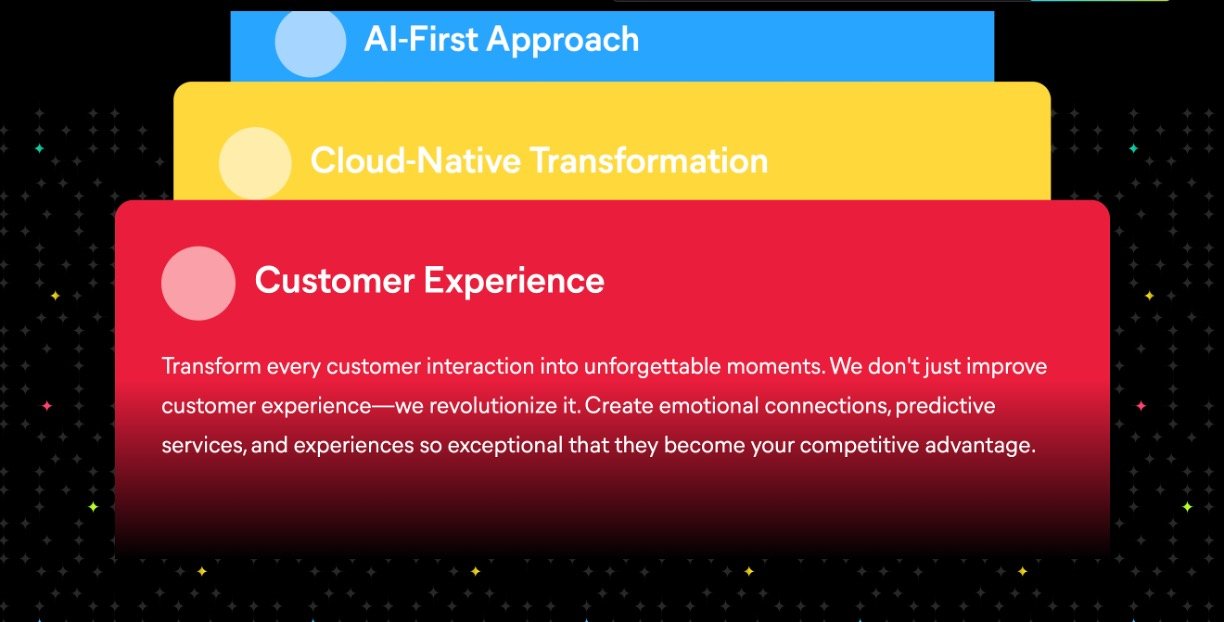 • Industry-specific AI solutions including financial services, insurance, retail, healthcare, manufacturing, and technology.