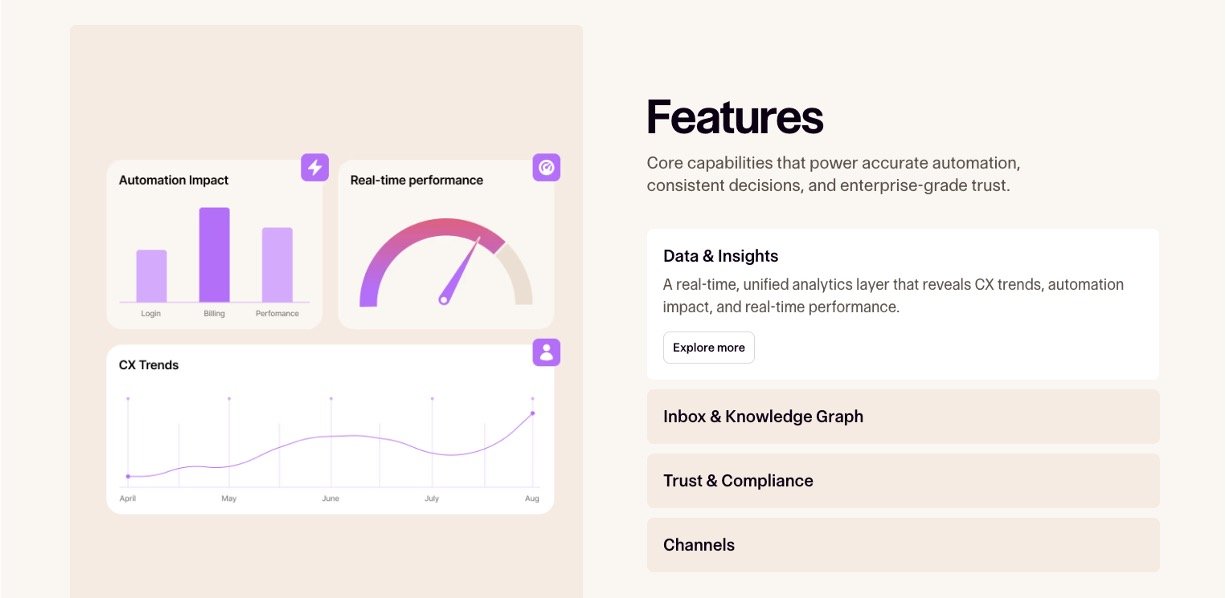 • Autonomous Actions: AI handles complex workflows like refunds, updates, and approvals by connecting directly to your systems—no manual steps needed.
