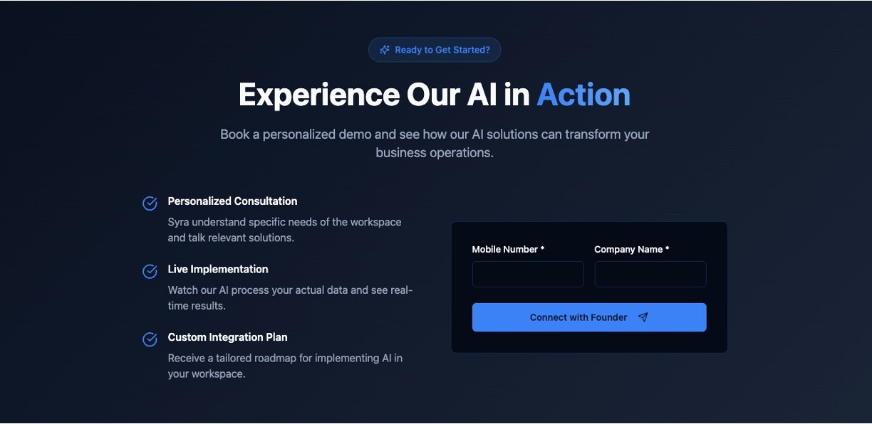 Meet Syra revolutionizes workspaces by letting AI dive into your real data for instant insights, making smart decisions effortless without tech headaches. No more guessing—watch it process files live and hand you a custom plan to weave AI into your daily flow. Perfect for teams wanting quick wins from their own info.