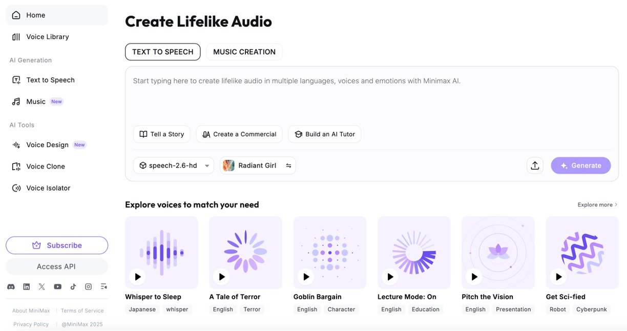 MiniMax Audio is an advanced AI-powered audio platform designed to convert text into ultra-realistic speech and generate high-quality audio content with ease. It supports over 300 voices in more than 30 languages, offering a natural, human-like sound with emotion control and customizable voice settings. Users can input long texts (up to 200,000 characters) or provide files and URLs for seamless audio conversion. The platform is ideal for podcasters, content creators, enterprises, and developers needing scalable, multilingual audio solutions.