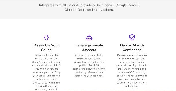 Mission Squad is an advanced agentic AI platform that enables users and organizations to build, manage, and deploy cooperative AI agents or squads which work together to accomplish complex tasks efficiently. It supports a flexible, multi-provider AI ecosystem allowing seamless integration with various top AI models like OpenAI, Google Gemini, Claude, and Groq, giving you high control and customization over workflows and agent orchestration.