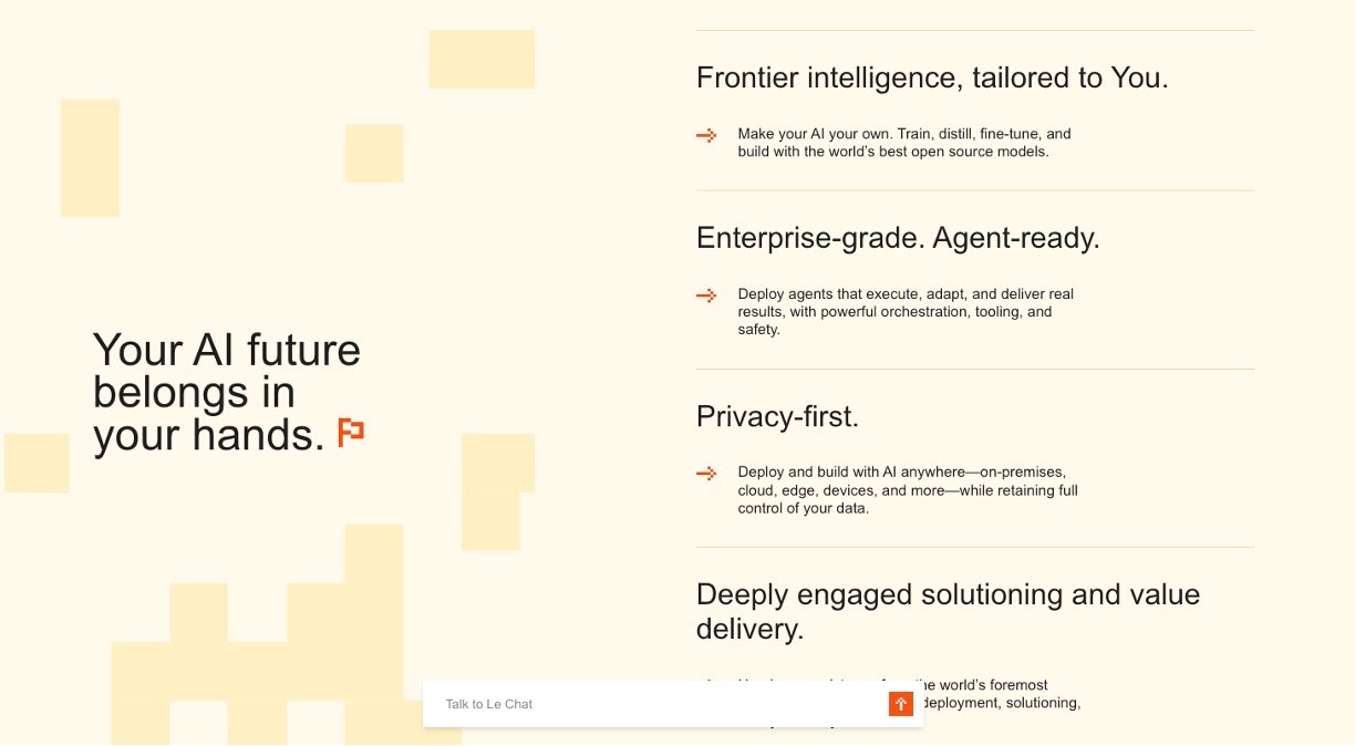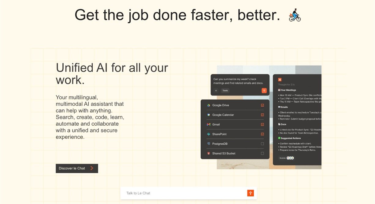 Multilingual AI Assistants: Mistral AI offers tools like "Le Chat," a multilingual, multimodal AI assistant designed to assist with tasks such as search, creation, coding, learning, automation, and collaboration.