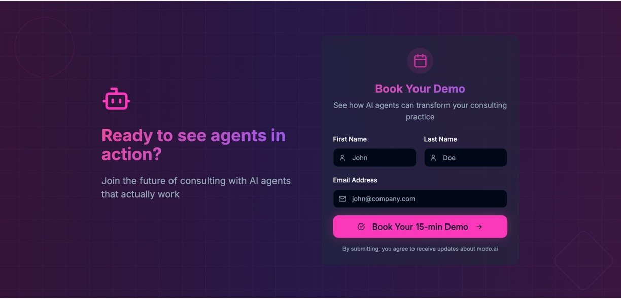 Modo AI is a secure AI platform that automates consulting workflows such as onboarding, research, and benchmarking, reducing timelines from weeks to minutes. By using autonomous AI agents, Modo helps consulting teams deliver faster diagnostics and insights without the need to add headcount. The platform is focused on improving efficiency, scalability, and security for professional consulting services, enabling teams to manage more complex projects with less manual effort.