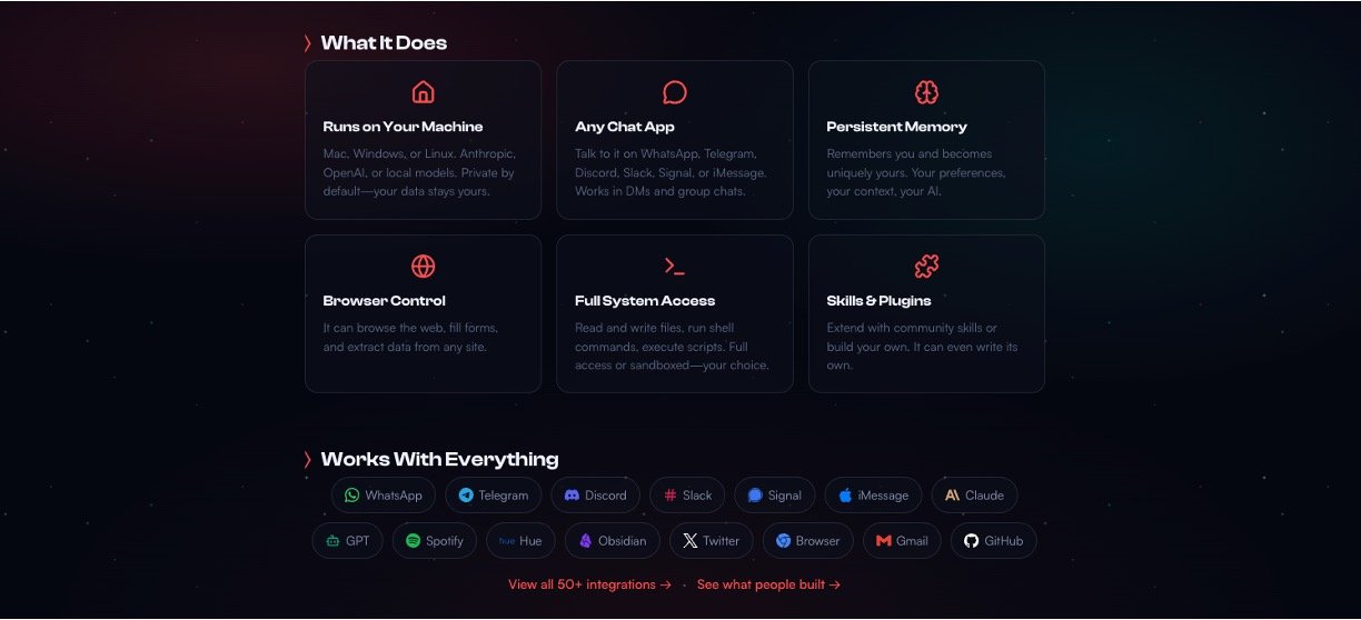 Doer of Tasks: Controls your browser, runs commands, manages files, and even builds new skills for itself when you need them.