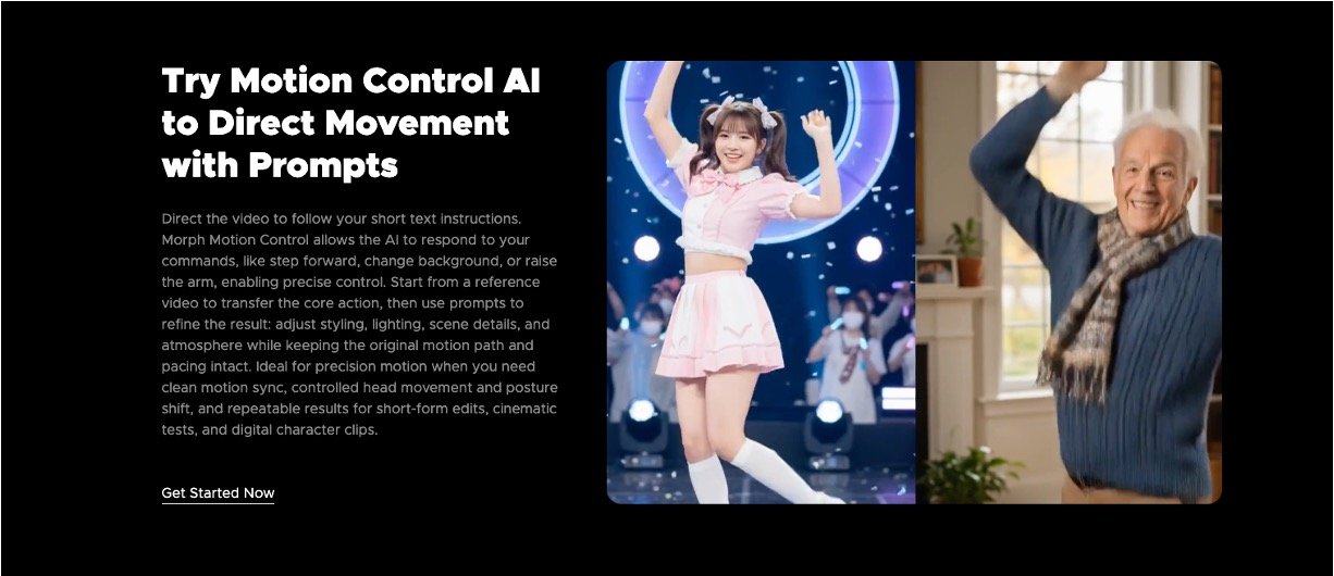 Morph Studio's AI Motion Control lets anyone create smooth, realistic videos by combining a reference image (like your character) with a reference video (for the motion). Powered by Kling v2.6, it handles everything from subtle facial expressions to full-body dances, keeping your character's look consistent while extracting clean motion. Perfect for creators making short TikTok clips, Instagram Reels, or digital characters without needing video editing skills or expensive gear.
