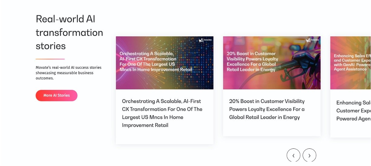 Data-Driven Insights: Tools like Movate Insights pull info from your systems to spot trends and make quick decisions, no IT hassle required.