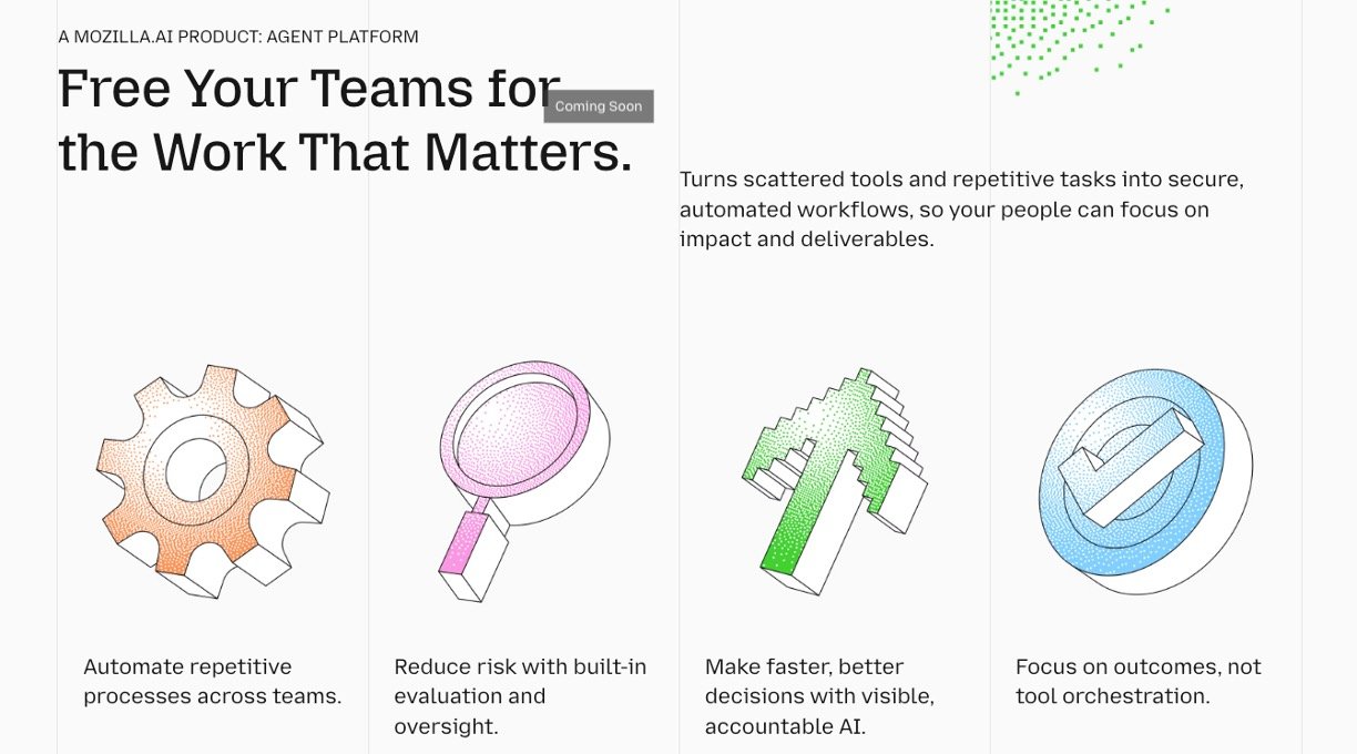 Mozilla.ai builds trustworthy AI tools that are open, transparent, and easy to use, so anyone can create smart systems without hidden tricks or lock-ins. Their Agent Platform turns everyday repetitive tasks into smooth automations, freeing teams to focus on big ideas. Backed by open-source code from a global community, it ensures everything is checkable and adaptable for real-world needs.