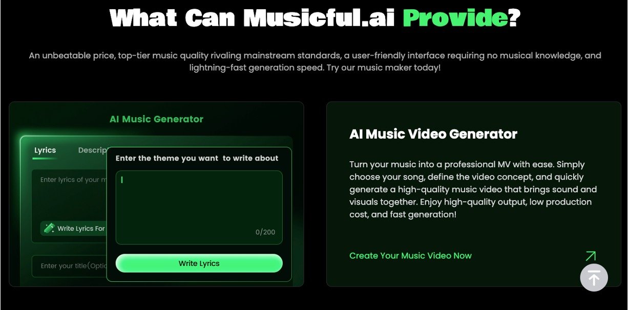 Musicful is an AI music generator that turns your text, lyrics, or audio snippets into full songs with vocals and instrumentals in a few seconds. It supports many genres such as rap, rock, pop, country, jazz, and lo‑fi, so users can match the sound to any project. All generated tracks are royalty‑free for users under a non‑exclusive perpetual license, making it easy and safe to use the music on platforms like YouTube, podcasts, games, and streaming services.