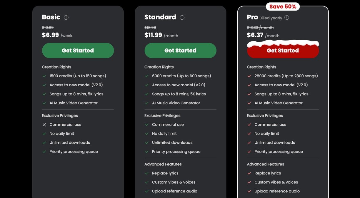 Support for multiple genres and styles such as rap, rock, pop, country, K‑pop, metal, lo‑fi, DJ, dance, and electronic, with fast creation speed and high audio quality.