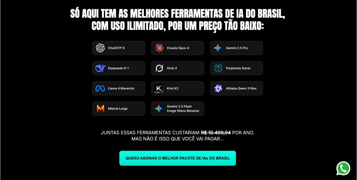 Access to 11 of the most advanced generative AI tools in the world, including ChatGPT, Claude, Gemini, Grok and others, with unlimited use according to the platform’s conditions.