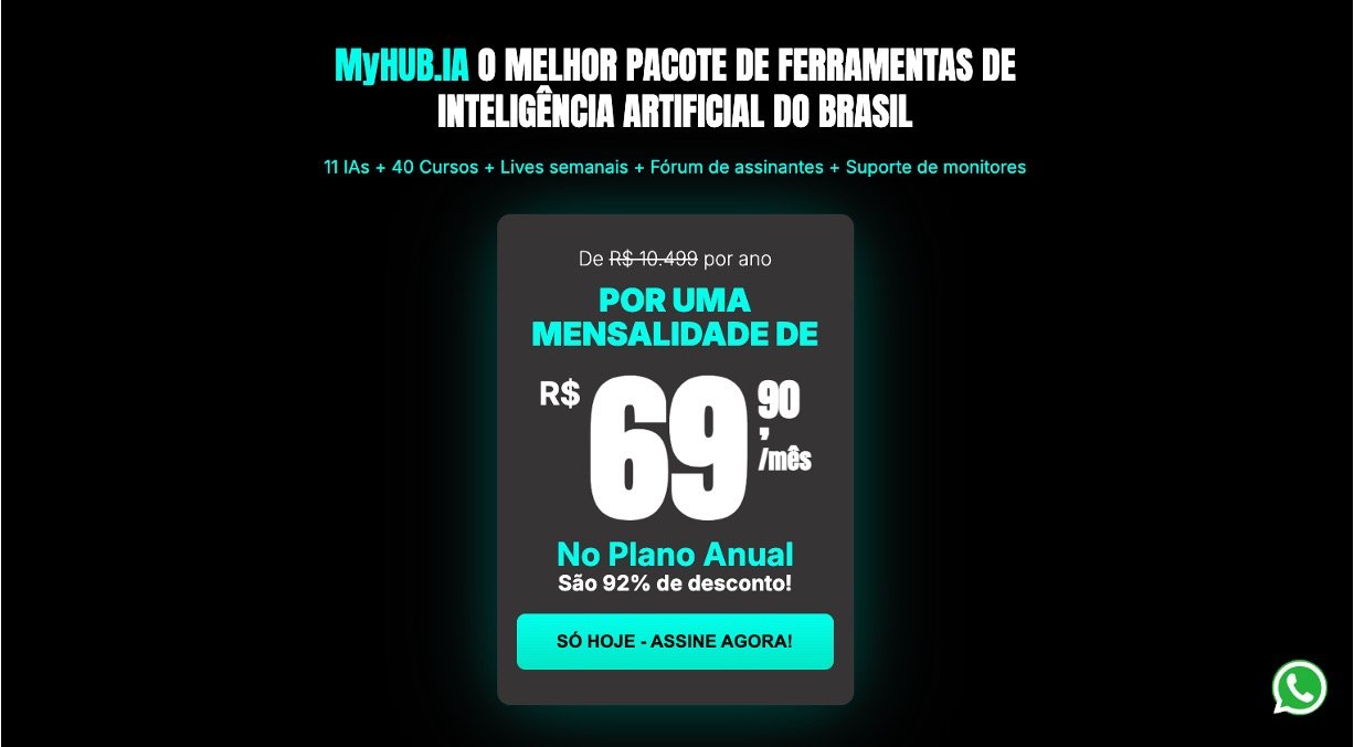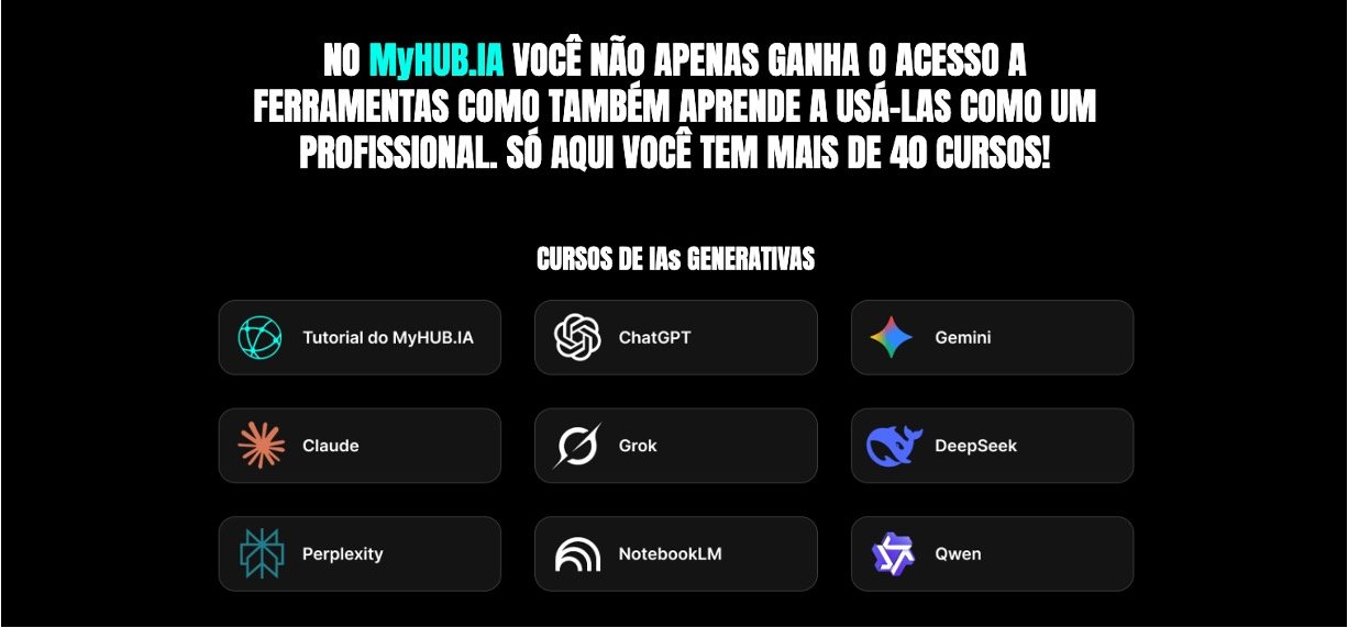 MyHUB IA is a Brazilian platform that brings together the world’s most advanced generative AI tools in a single subscription, with a focus on simple access and learning for everyone. You get unlimited use of AIs like ChatGPT, Claude, Gemini, Grok and others, along with courses, live classes, and community support to help you use these tools with confidence in your work and business. Created by Faculdade HUB, the institution of Thiago Nigro, the platform was designed so that professionals from any area can increase productivity, automate tasks, and grow faster in their careers without needing a technical background.
