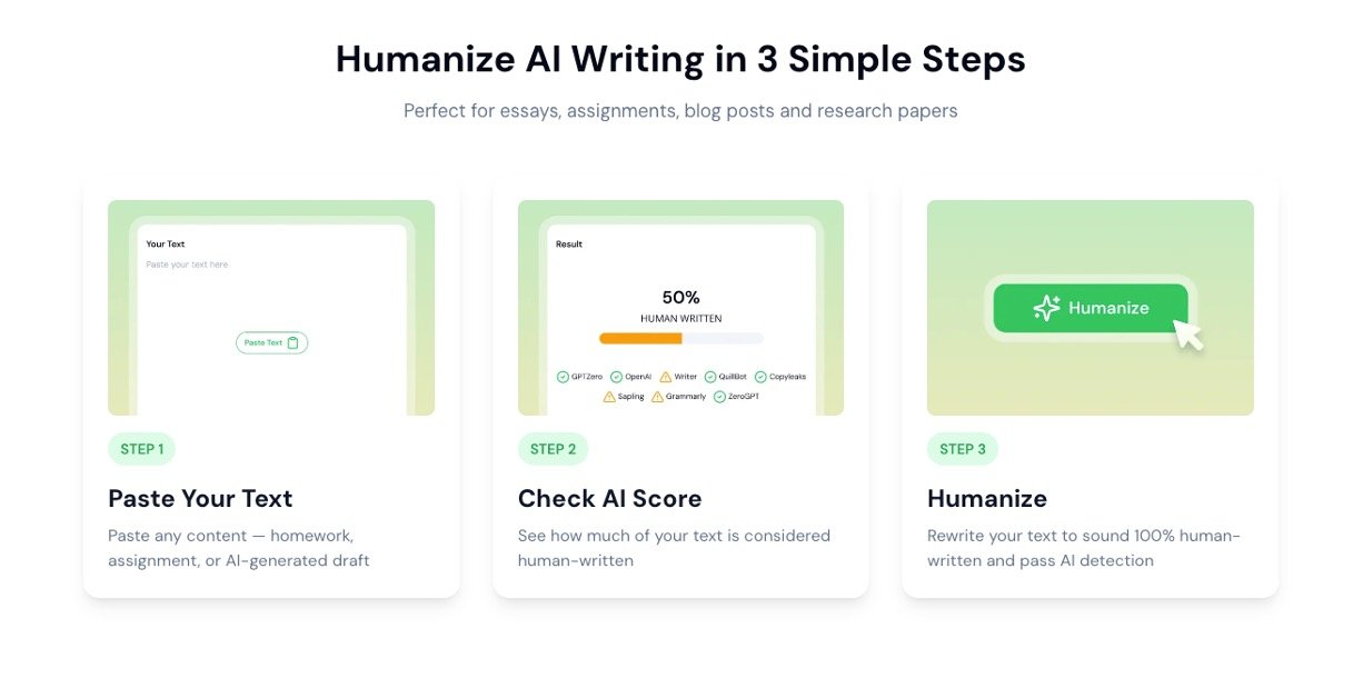 Academic Writing: Converts AI-generated essay drafts, research papers, and assignments into human-like text that passes academic integrity checks.