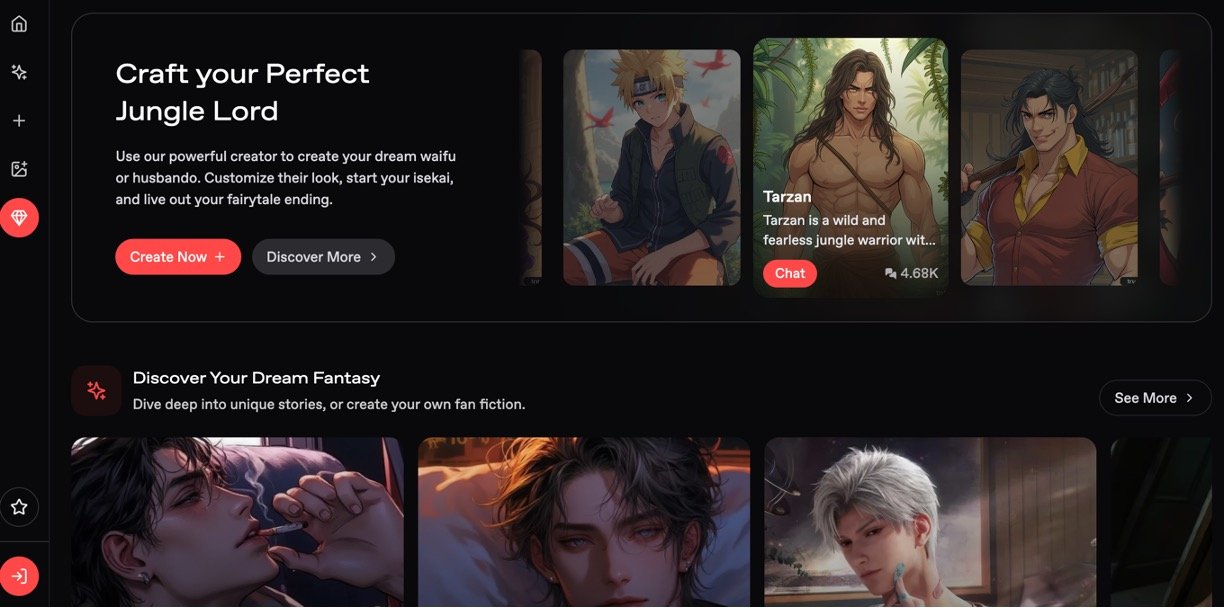 • Bring your anime dreams to life with endless stories and immersive roleplay powered by AI.