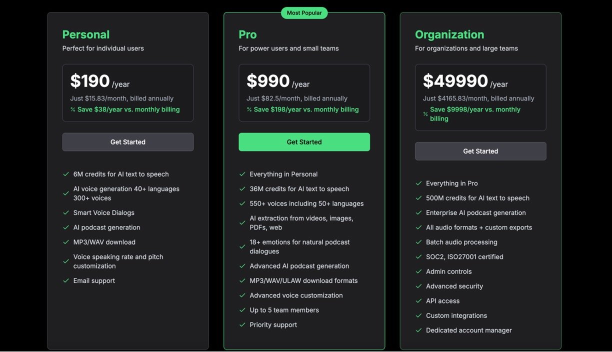 • Multi-voice dialog creation for podcasts, audio dramas, and interviews with separate tones and emotions.