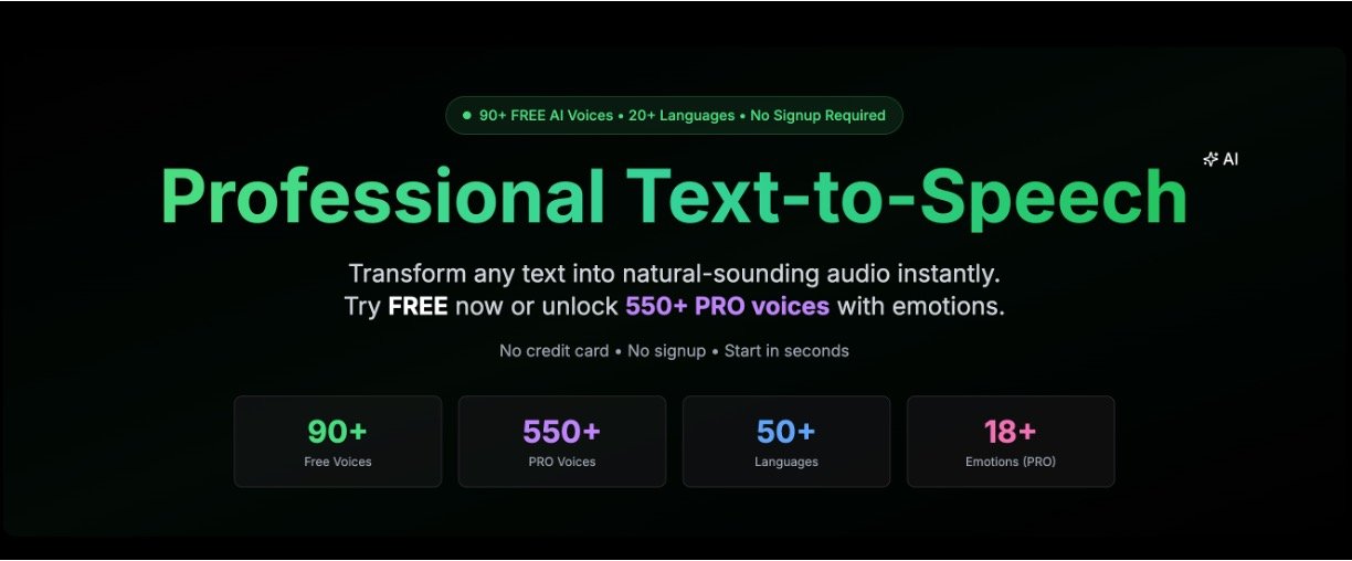 • Extensive library of 550+ premium voices including emotional styles across 50+ languages and accents.