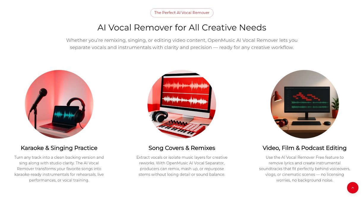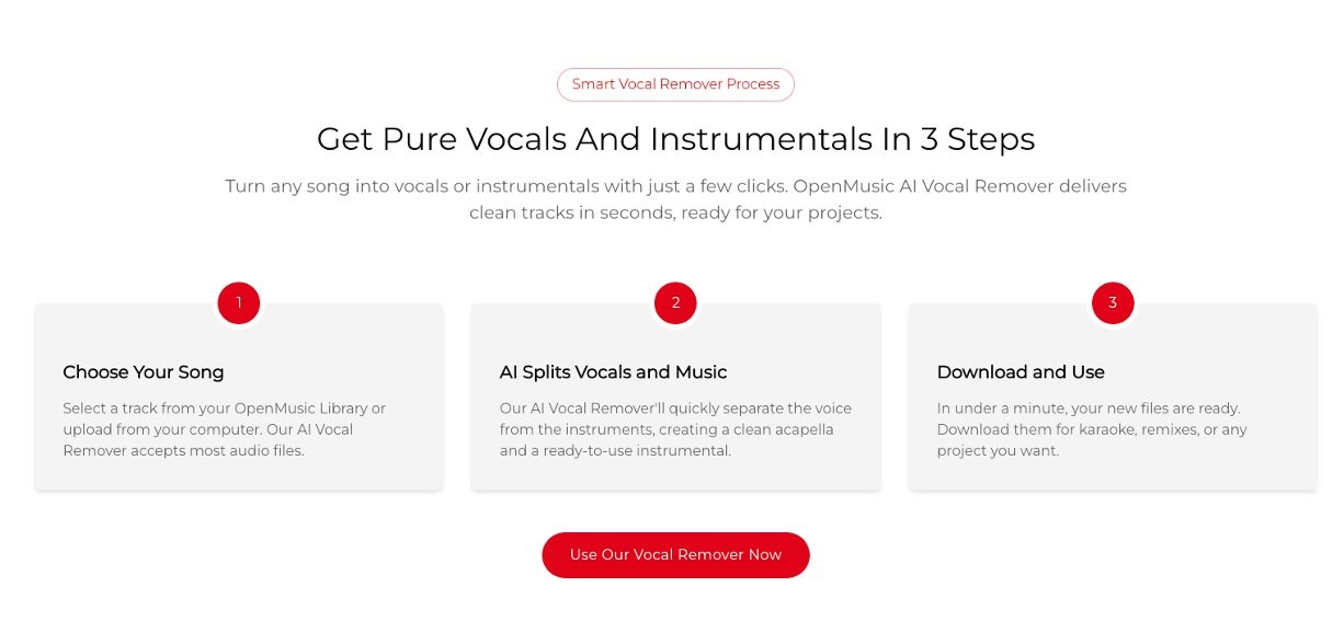 OpenMusic AI Vocal Remover is your easy online tool to separate any song into vocals and instrumentals using smart AI. Just upload a track, and it quickly pulls out clean acapella voices or background music with studio-quality results and little distortion. Perfect for beginners who want pro-sounding files for fun projects like karaoke or videos without complicated software.