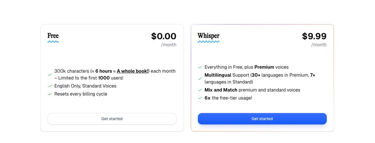 Variety of natural-sounding AI voices with perfect intonation and emphasis.